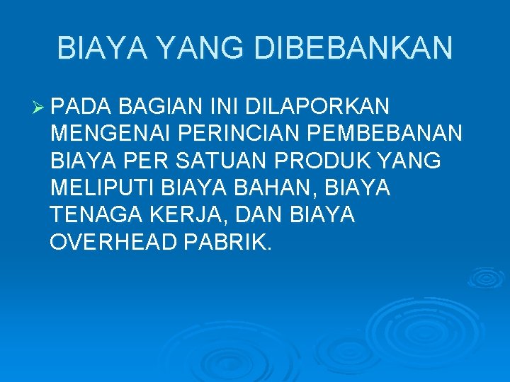 Biaya overhead adalah biaya produksi selain bahan baku dan biaya tenaga kerja langsung.